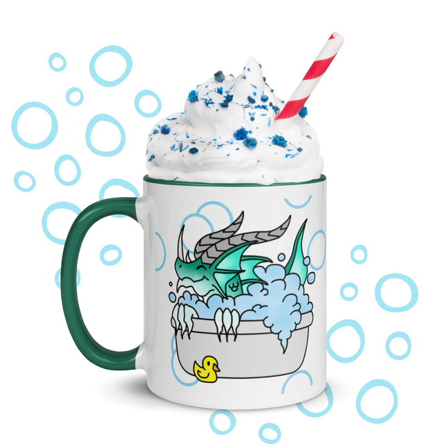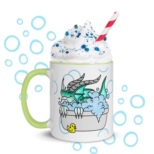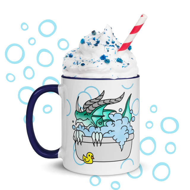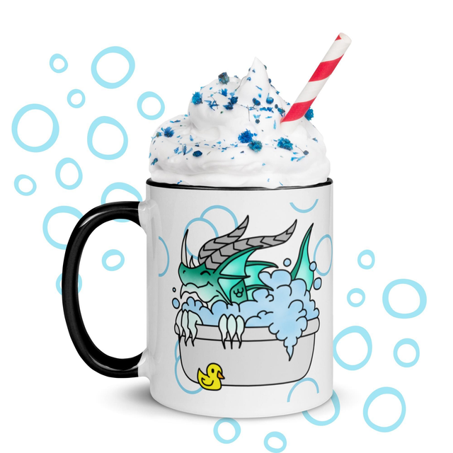 Zeige deine gute Laune mit dieser stylischen Tasse! Bedruckt mit einem Wasser-Drachen der fröhlich in einer Badewanne planscht - und passend dazu mit bunter Innenfarbe deiner Wahl, ist diese Tasse ein wahrer Hingucker und die perfekte Ergänzung für deinen Tassenschrank.