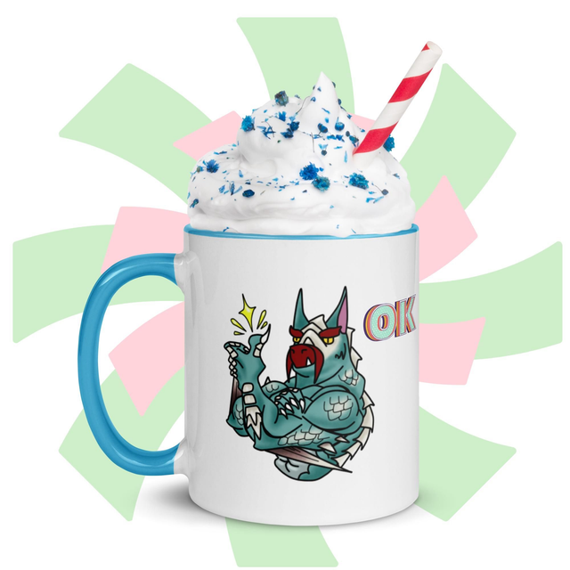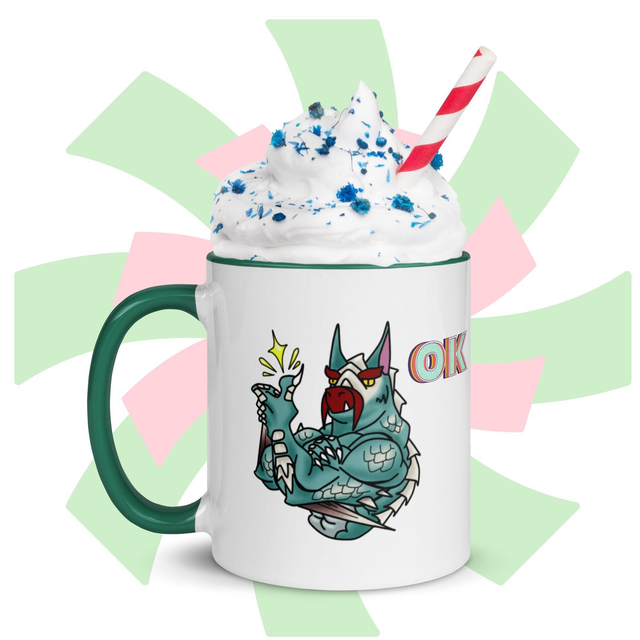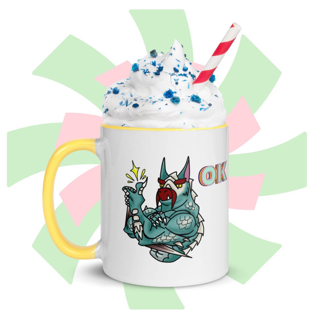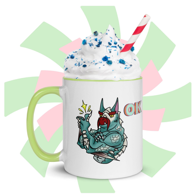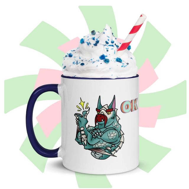 Zeige deine gute Laune mit dieser stylischen Tasse! Bedruckt mit einem Land-Drachen der zustimmend seinen Daumen Hoch hällt - und passend dazu mit bunter Innenfarbe deiner Wahl, ist diese Tasse ein wahrer Hingucker und die perfekte Ergänzung für deinen Tassenschrank.